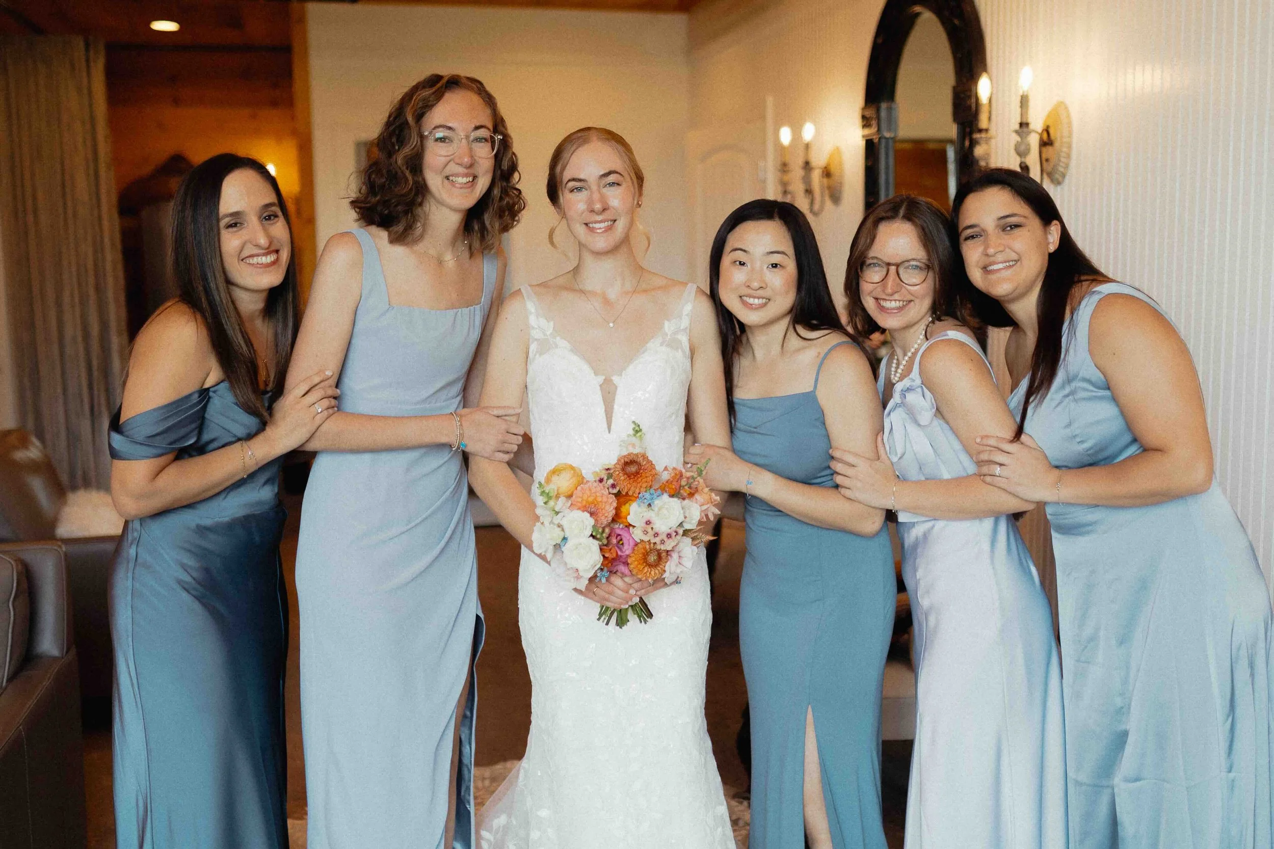 Their wedding day began in the bridal suite and groom’s suite. The bride and her bridesmaids had a tender first look moment and Noah had his mother put on his boutonniere.